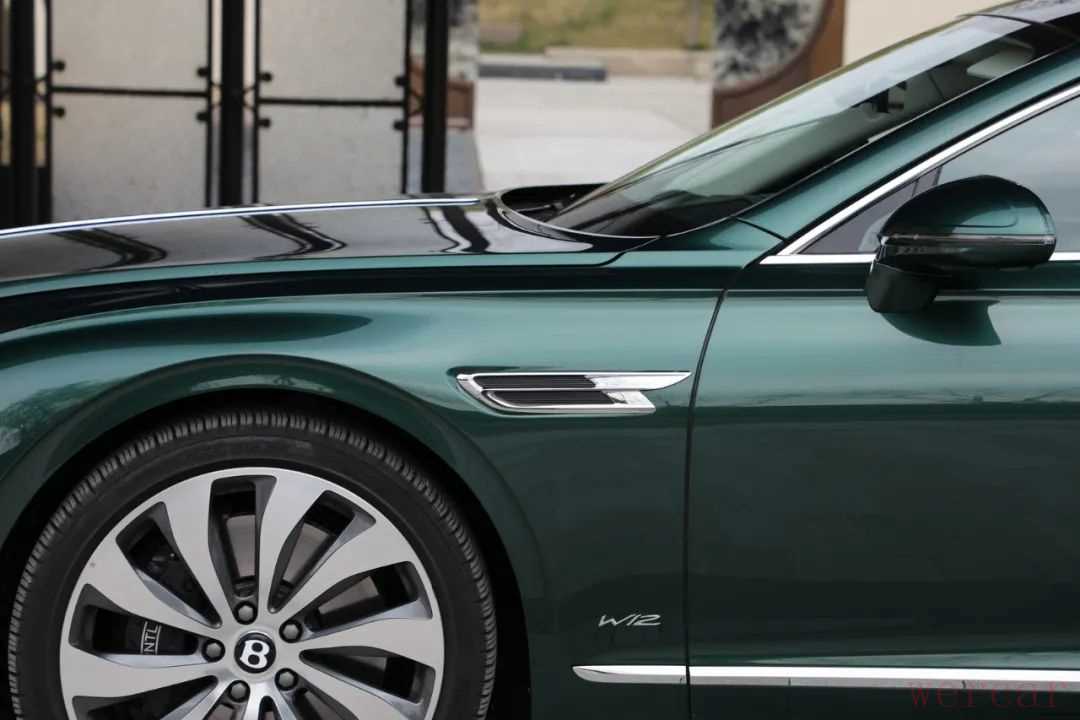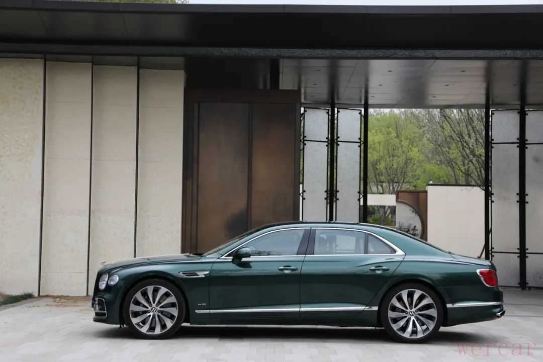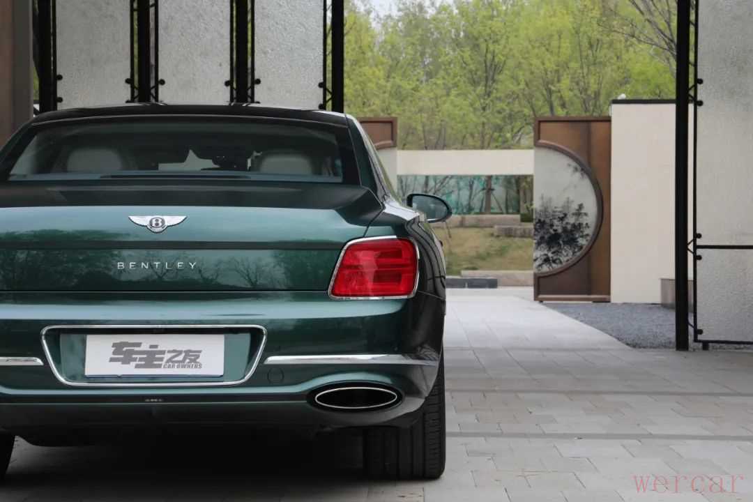 3年后我站在这辆车的旁边,有一种终于再相见的感觉。光洁的车身,挺拔的身姿,特有的绿色在阳光下反射出强烈的金属颗粒感。很多人对宾利的认知还停留在LOGO的翅膀和硕大的B字上,但我一直觉得,英国人想要造的一辆宾利和国人对一辆宾利的需求其实并不完全相同,只是因为机缘巧合和品牌强大的号召力,恰巧又达成了产品上的某种一致。于是宾利在中国市场的销量节节攀高,消费者的满意度也很不错。飞驰其实是宾利旗下最具代表性的车型,比欧陆GT和慕尚更加接近宾利品牌造车的初衷,从车名就能看出来,Flying Spur,充满了速度和力量感。宾利品牌从创立之初就和速度结下不解之缘,罗-罗最著名的马林发动机就是在克鲁(Crewe)工厂生产制造。所以宾利造车一定是速度优先,只是恰巧由于深厚的历史积淀而豪华了起来,但宾利灵魂里真正的傲骨一定是高速飞驰的畅快。