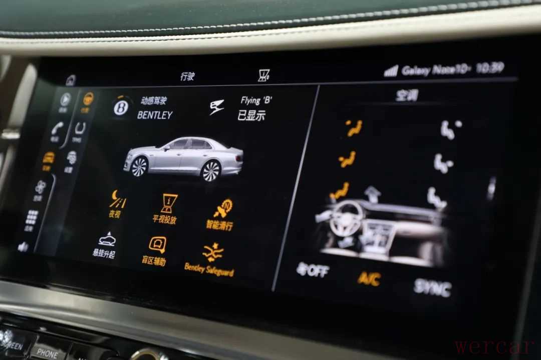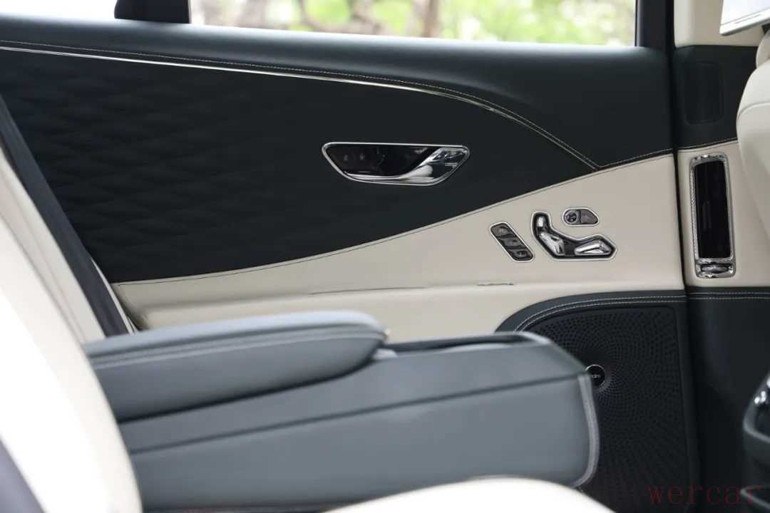 当然,作为百年品牌,宾利仍然将克鲁工厂最擅长的皮革和木质装饰经验继续发扬光大,同样是菱形皮革花纹,在这辆飞驰上面被处理得更加高级,凹凸质感不是靠缝线来压制出来的,而是皮革本身和底部衬板高度贴合经过手工压制处理出来的,关于一辆宾利里面用多少张整皮,一张皮革的审查有多么严苛这样的话我就不再赘述,因为之前已经有过大量的文章写过这点,我们只需要坐在这辆车里面去闻,去看,去触摸,只要你的神经足够敏锐,就能够感受到最棒的材料是什么样的品质。那些精致的滚边和刺绣缝线早就和普通豪华车拉开了明显的差距。
