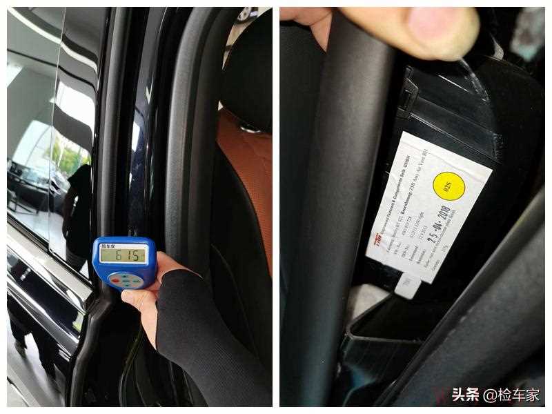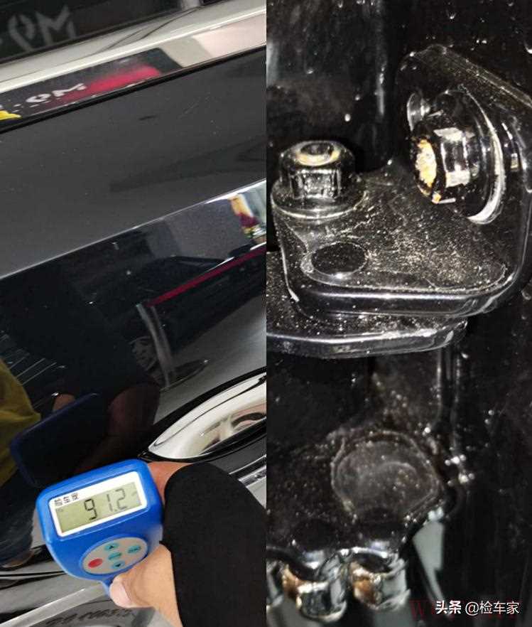 测到右后门时发现漆面厚度只有91um,远低于正常漆面的平均值,打开门看到车门固定螺丝及附件均有拆卸,这种情况基本可以确定车门是后更换的。