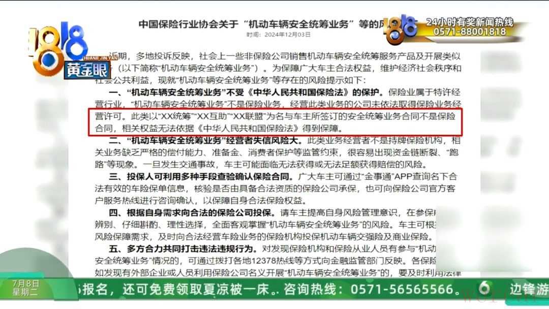 某保险公司工作人员:在承保环节里面会更加优化一点,对那些疑似统筹的业务,我们会增加统筹风险提示说明,跟投保人的话要清晰确认这个环节。保险公司内部的话也会进行一些车险的一个定价模型上的升级之类的,就是实现精准的定价跟服务,差异化的服务,这样有一些低风险的车主他可以得到更多的优惠。