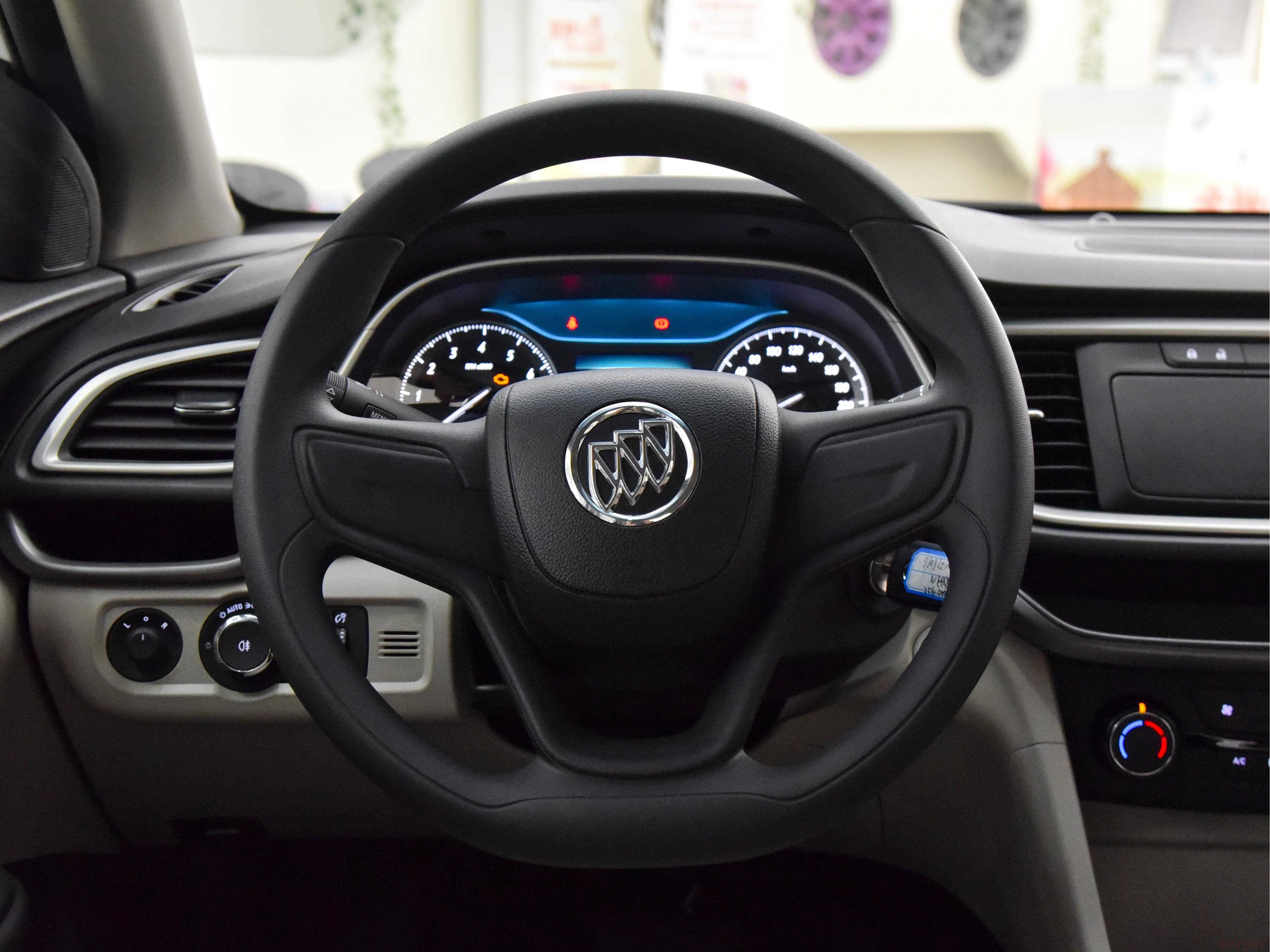 英朗方向盘使用了三辐式的设计,只是采用的塑料材质握感表现一般。仪表盘界面运用了双圆环式的造型,界面显示直观。