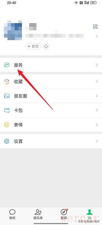 1、在OPPO手机上打开微信APP,进入到我页面,点击“服务”。