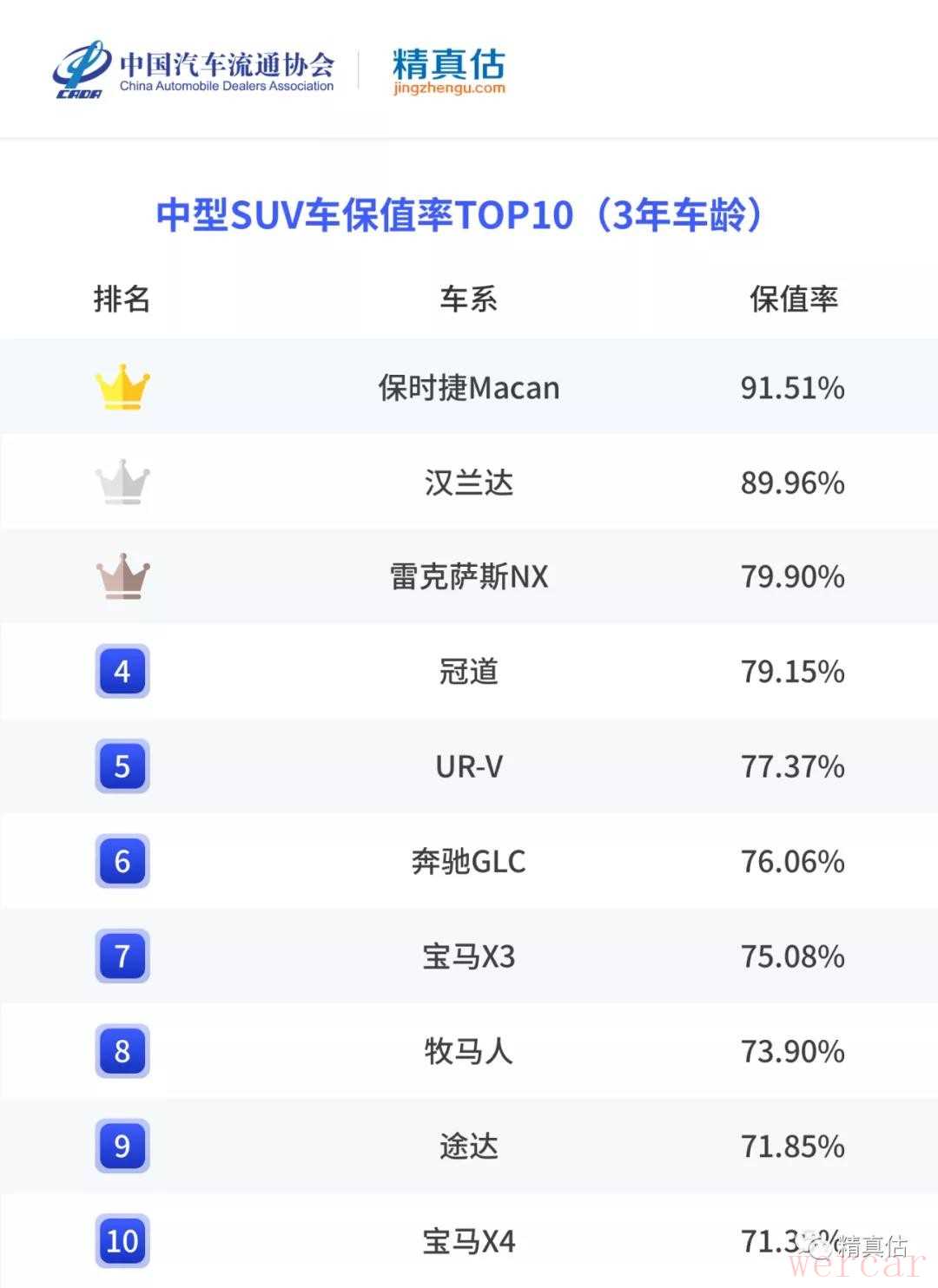 排在第一的当然还是被戏称为“换壳Q5”的保时捷Macan,但不论怎么说,只要车头还挂着保时捷标志,在保值率方面保时捷依旧是“永远的神”,品牌力方面依旧不可动摇。