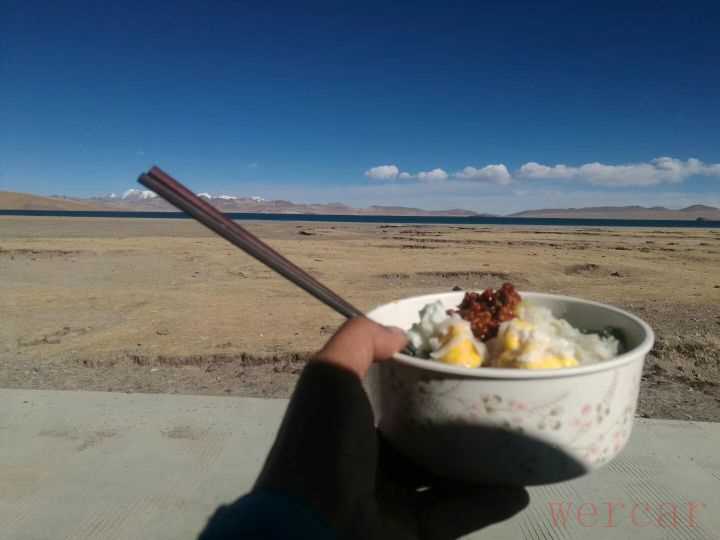 在西藏普姆雍措边,我度过了我58岁生日。用车上的副电瓶给我自己做了碗面条。
