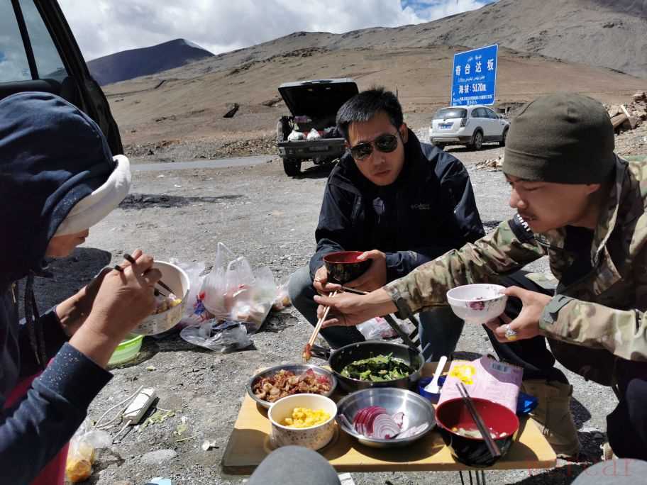 本人在新藏线海拔5000多米的奇台达板上休息做饭。