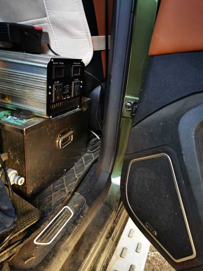 我的副电瓶安装在了车辆副驾驶座位后面地板上。副电瓶和逆变器放在一起,最上面是电台。