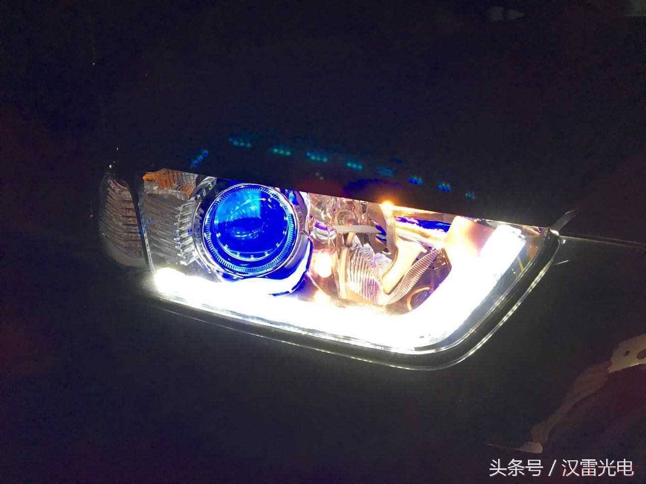 灯泡选用了主流的5500k雷神高亮氙气灯,亮度与穿透力兼备,明智之选。另外加装流光泪眼日间行车灯,配以蓝色恶魔眼,perfect !