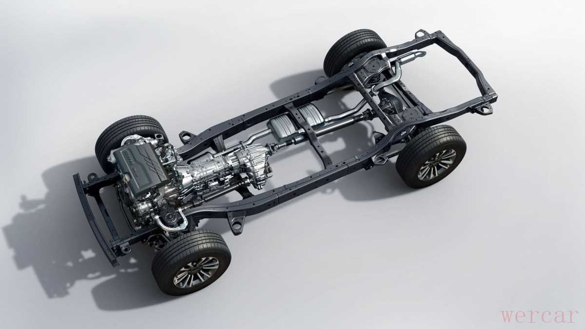 相比汽油版车型,柴油版车型的最大不同自然是动力系统。二代哈弗H9柴油版搭载2.4T柴油发动机+9速自动变速箱的组合,发动机最大净功率135kW,最大净扭矩480N•m。在4L模式和三把锁锁定状态下,轮端扭矩16778N•m,大扭矩也能够带来出色的动力持续性。同时,其还标配TOD+Mlock,将适时四驱和分时四驱串联在一起,既有适时四驱的智能也有分时四驱的刚性连接。前/后桥电控机械式差速锁与TOD+Mlock组成三把锁,机械差速锁牢固可靠,可实现完全锁止,当三个车轮同时打滑时也具备脱困能力。