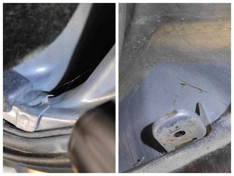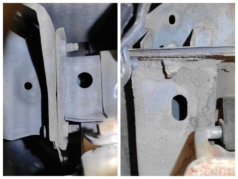 水箱框架的这个螺丝虽然看不清,但是压着一根固定的铁丝肯定是拆过的,好在两边的叶子板加强筋和减震器座焊点都是没有问题的,纵梁从上部看也没有发现变形痕迹。