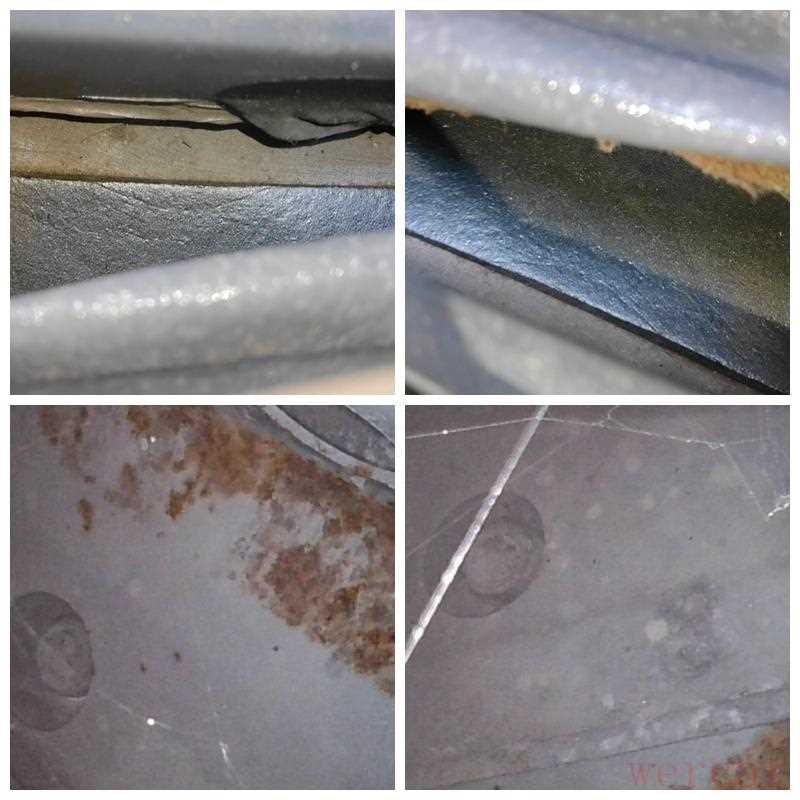 将车辆举起来,果然是没有一处是干的,我都不敢站在下面检测,已经到了修也不是不修也不是的地步了。