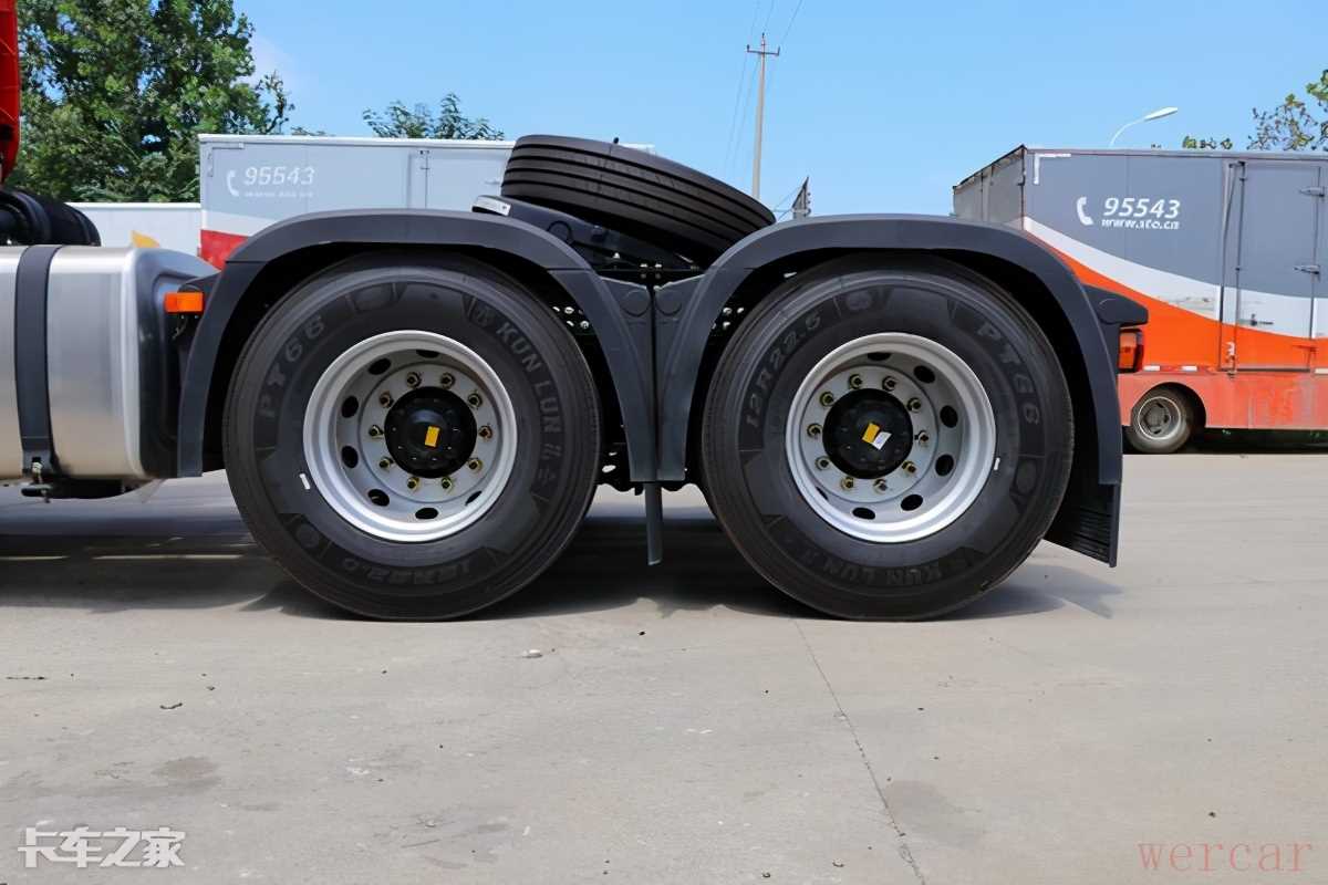 轮胎方面,整车装配规格为12R22.5的昆仑牌轮胎。整车采用90#鞍座,提供了更强的牵引能力。