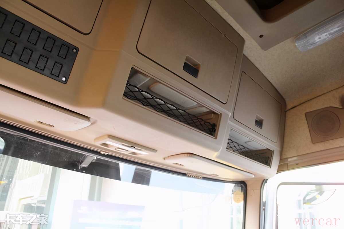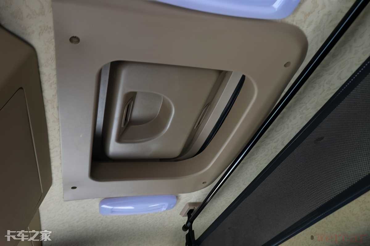 驾驶室顶部则布置着3个大容积储物格和2个小的储物槽,能轻松容纳下各种日常生活用品。