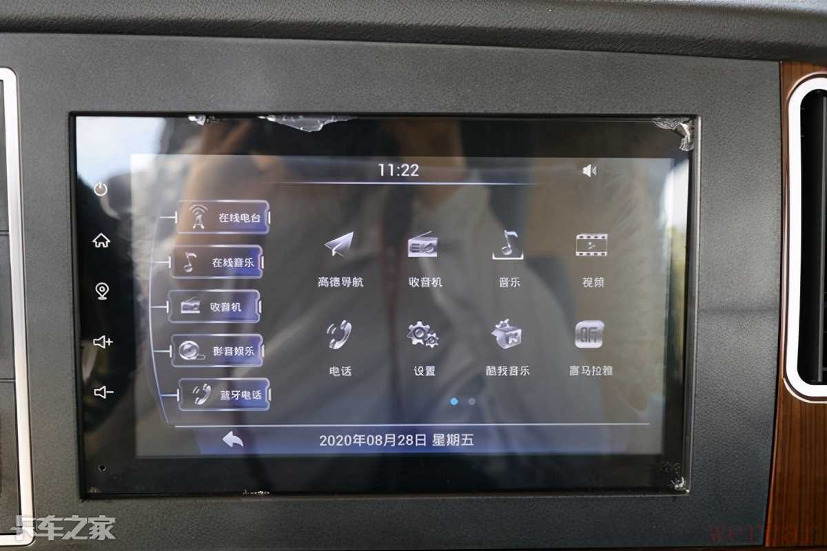 中控大屏支持触屏及收音机、音乐、视频、导航、蓝牙电话等功能。