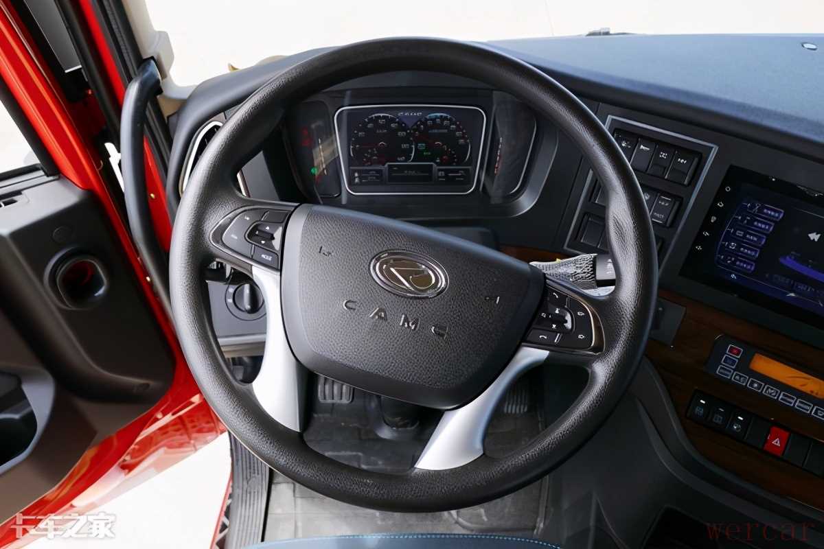 驾驶室配备四辐式多功能方向盘,集成有液晶仪表和多媒体控制按键。