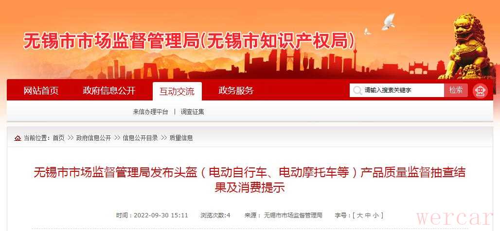 江苏无锡市发布电动自行车/摩托车头盔质量抽查报告