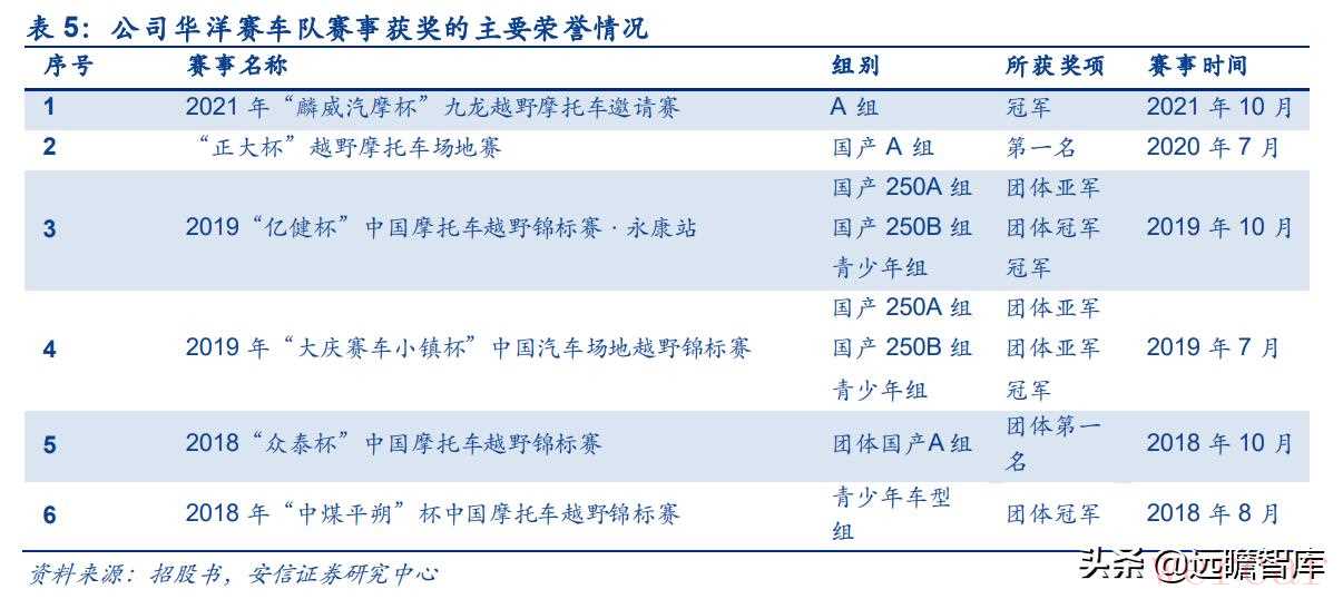 1. 华洋赛车:越野运动摩托车知名品牌,近年全地形车业务快速扩张