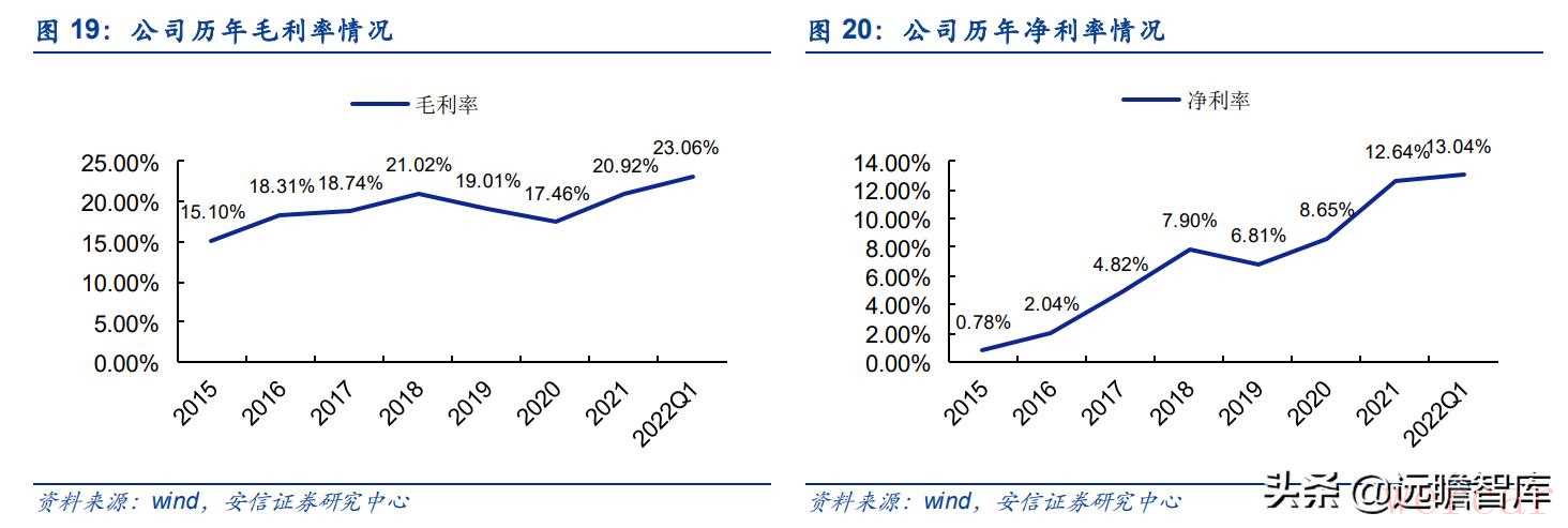 从人员结构来看,公司研发人员数量占比由2020年的10%增至2021年的17%,专业的人才梯队,有利于公司积极应对变化的市场环境,提升企业竞争力。