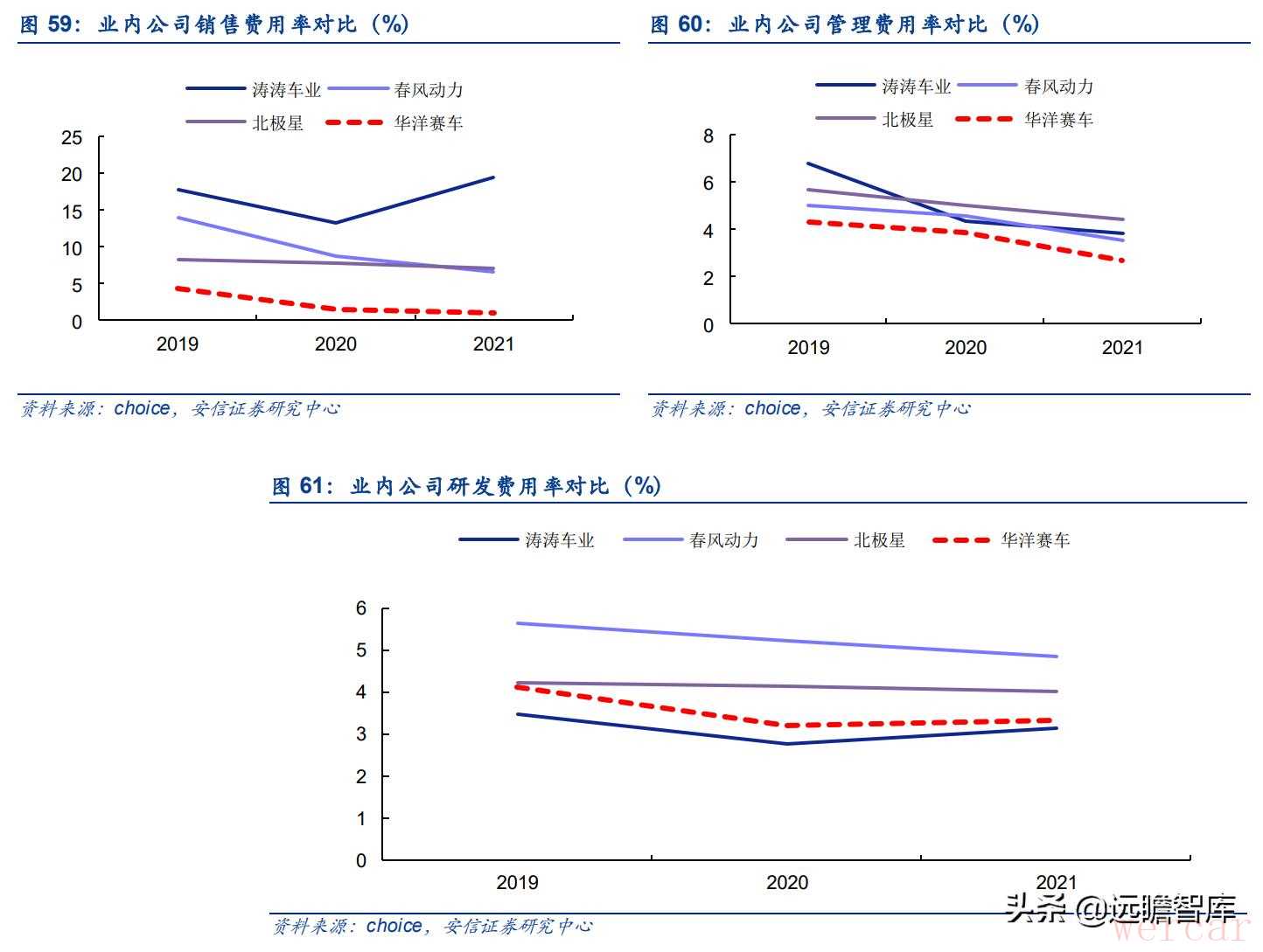 2019-2021年间,公司研发费用率分别为4.10%、3.21%和3.31%,高于涛涛车业,低于春 风动力和北极星,与行业平均水平接近。
