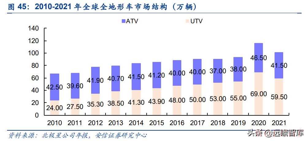 UTV 在2010-2021年期间的销量 CAGR 达 8.6%,为行业主要增量市场。