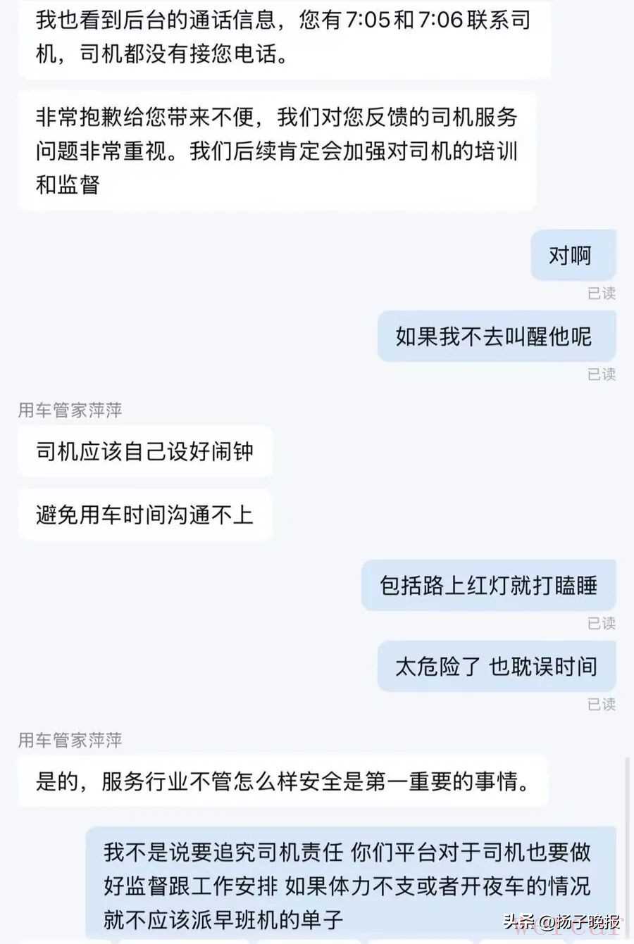 "女子崩溃急哭:专车司机等红灯多次睡着,平台最新回应引关注"