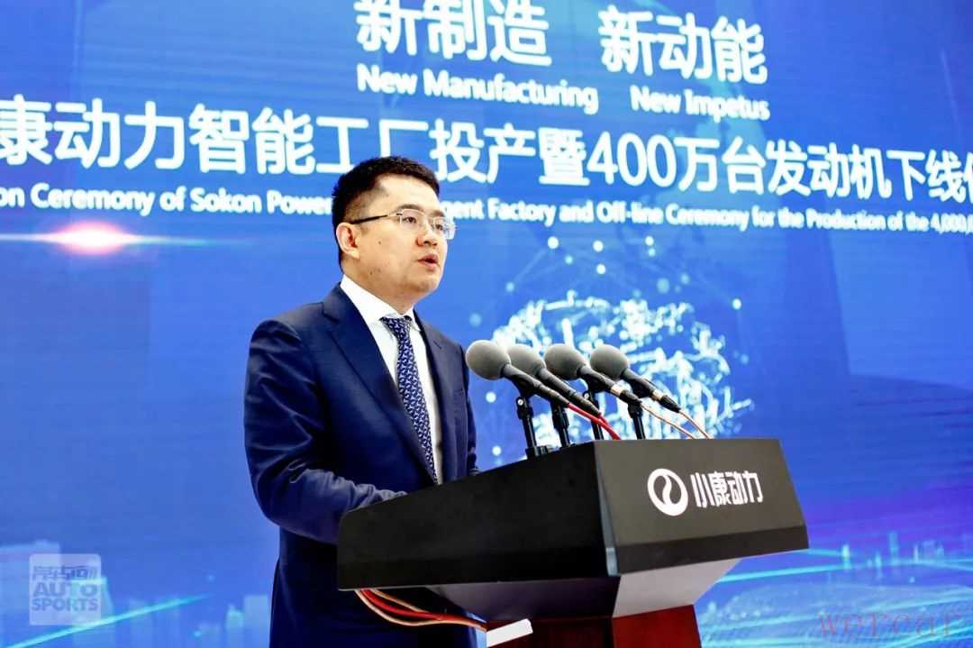 ▲小康集团汽车首席运营官刘昌东主持了智能工厂投产暨400万台发动机下线仪式