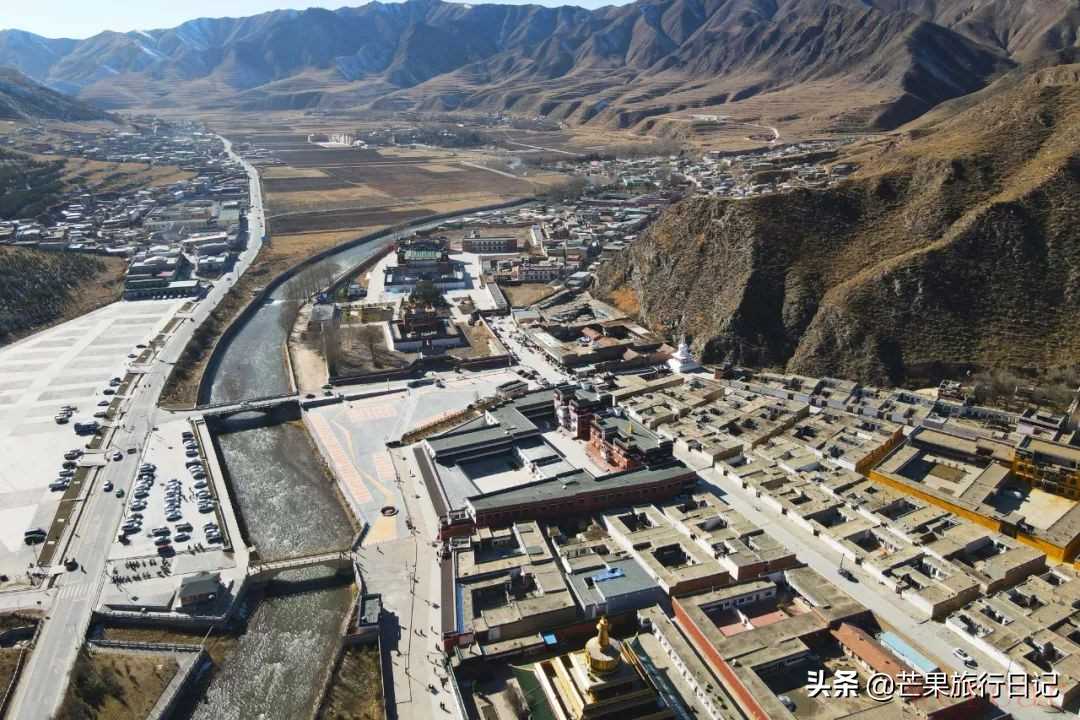 夏河县城不大,主街一眼可以望到尽头,城西处便是著名的“世界藏学府”拉卜楞寺,处于峡谷之中,寺前大夏河蜿蜒流淌,河对岸是连绵的山峰,半山处有一观景台,站在上面可以俯瞰拉卜楞寺全景,日落时分金色的阳光洒落在远处的村庄,炊烟袅袅,一派安静祥和。