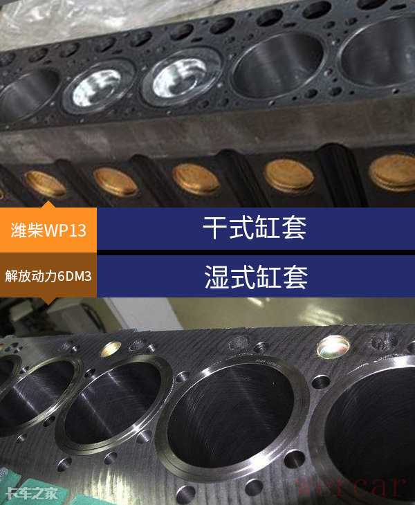 配件设计方面,潍柴WP13系列发动机采用了相对更加可靠的干式缸套,搭配经典的框架式结构机体,可耐受的工作强度更高,不易漏水和漏气。而解放动力6DM3系列发动机则采用的是湿式缸套,散热性能更强些,但结构相对更复杂。