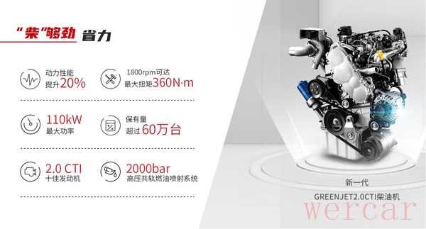 "“柴”经济:" 指柴油版车型带来的经济性优势,主要体现在"燃油经济性高"(更省油)、"使用成本低"(保养相对简单、耐久性好),符合“经济”实用的需求。