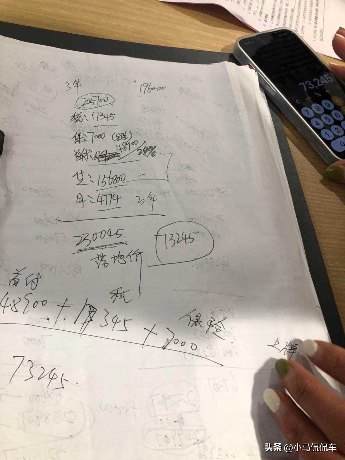 贷款买给优惠了3.61万,实际车价20.57万。购置税17,345元,保险约7000块钱。贷款15.68万,月供4774元分三年还清,总利息约1.5万元。总首付合计73,245元,加上贷款和利息,总落地价约24.5万。