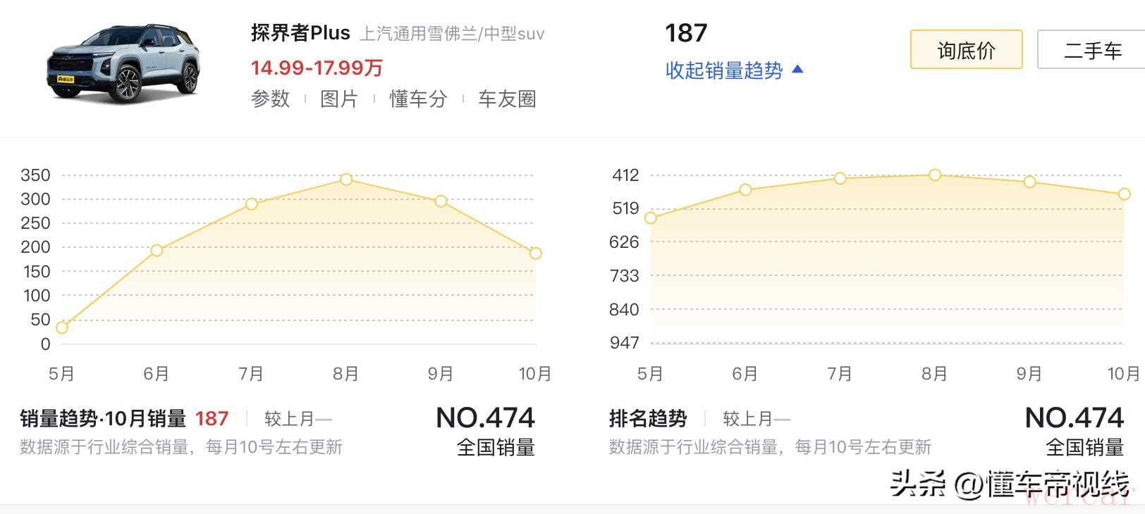 作为合资品牌中型SUV,与探界者具有类似定位的竞品车型包括上汽大众途观L(指导价18.68万-26.68万元)、上汽通用别克昂科威(指导价19.69万-25.99万元)等。结合销量来看,前代探界者10月销量为360辆,探界者Plus 10月销量为187辆。有关雪佛兰品牌的更多消息,我们将持续关注。