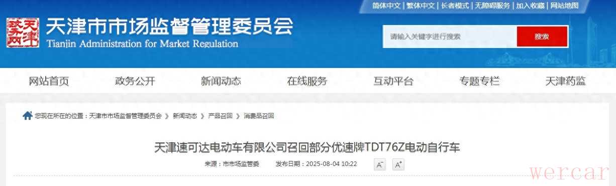 "天津速可达电动车有限公司官网:" 查看官网是否有召回公告。