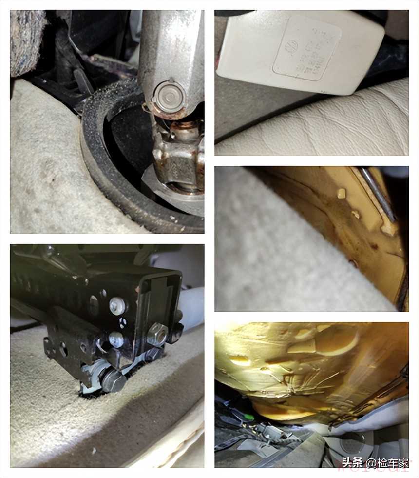 例行检查有没有进水,转向柱浮锈,座椅螺丝拆卸痕迹,不过后排座椅底部并没有水渍泥沙,座椅垫也没有发霉,各个缝隙死角均没有水渍泥沙,顺利过关!