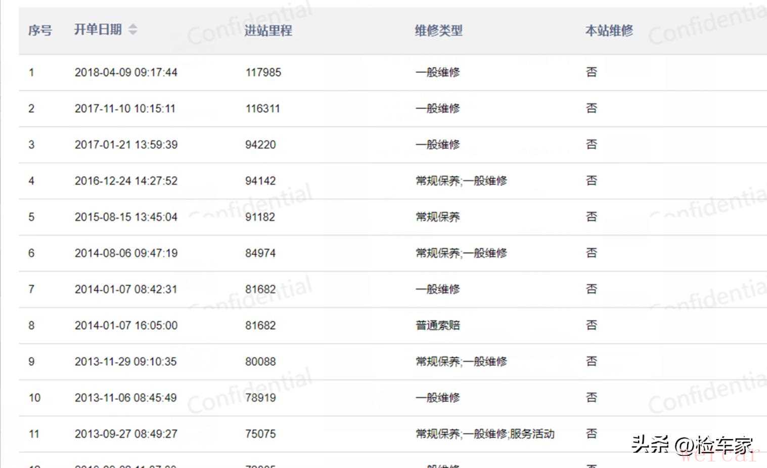 临走的时候又收到了后台发来的维保记录,事故方面没什么有价值的信息,但是公里数对不上了!最后一次进店是在2018年4月,当时登记的公里数已经有117985km了,结合使用频率和内饰磨损,以及发动机的状态,保守估计车辆的真实里程有20万+!