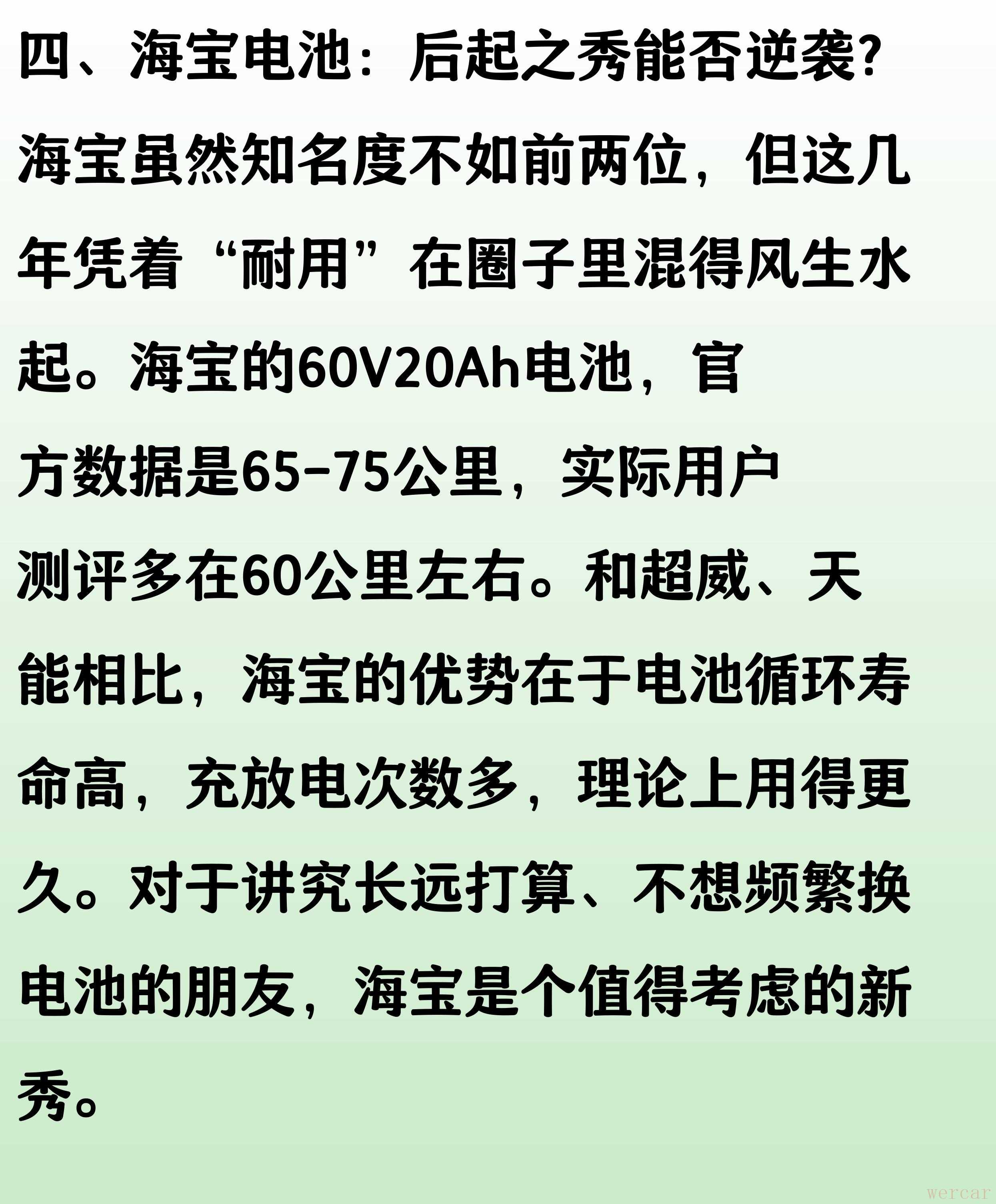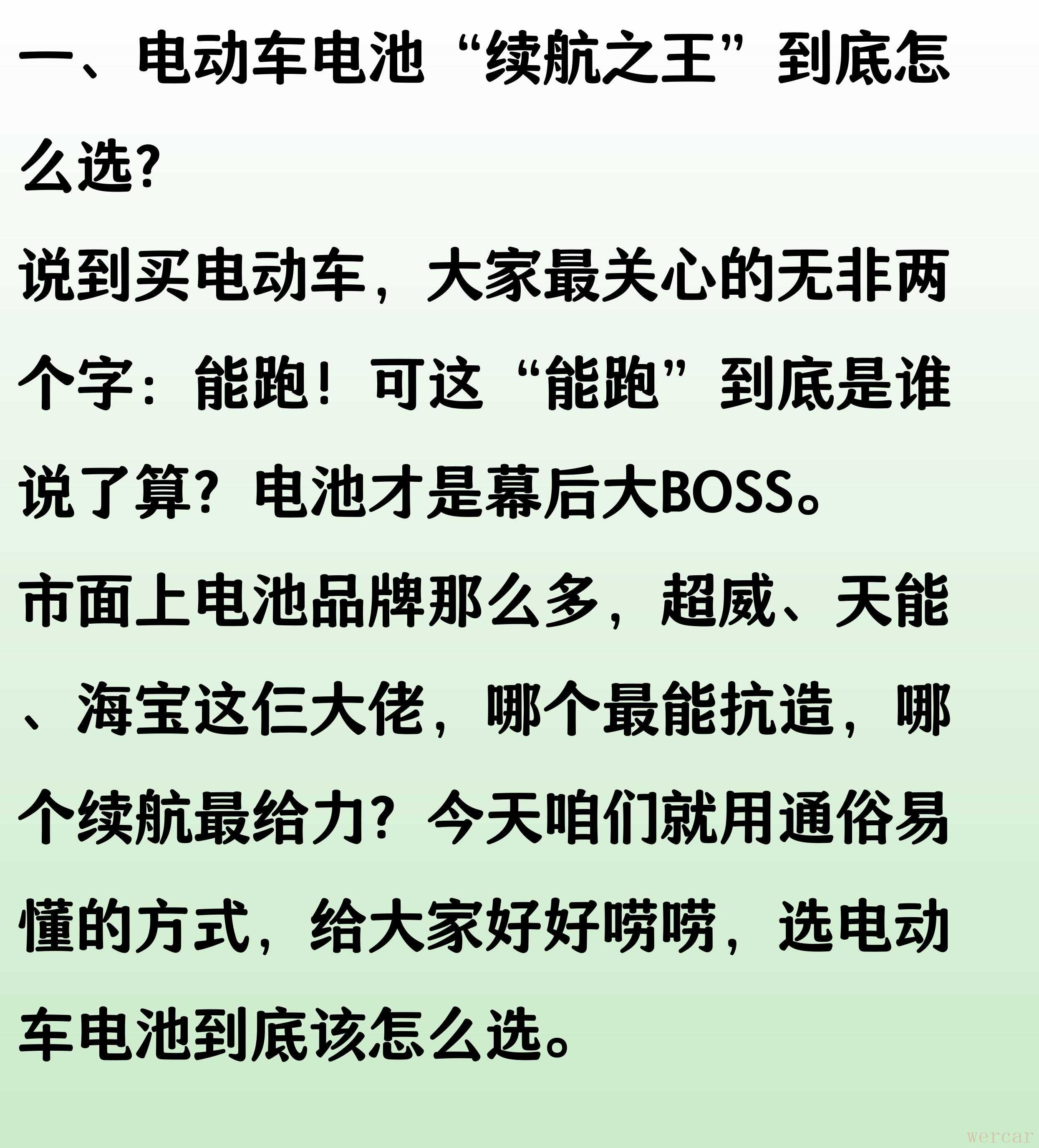 选电动车电池,续航王见真章!超威、天能、海宝品牌续航数据大揭秘,哪个品牌最能跑?