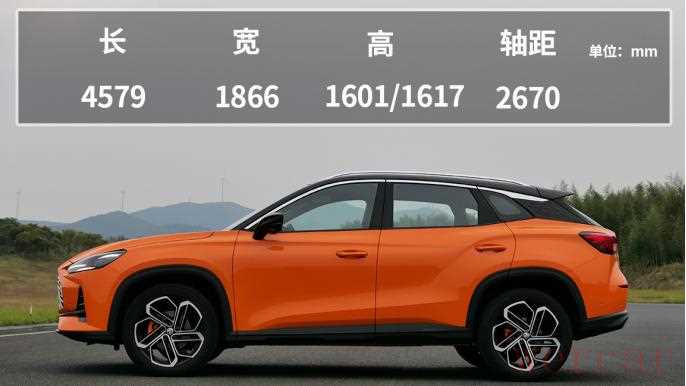 MG ONE定位紧凑型SUV,其长宽高分别为4579/1866/1601(1617)mm,轴距为2670mm。在下滑的车顶线条以及后方的弯曲腰线衬托下,车侧视觉重心进一步往后靠,并营造出蓄势待发的感觉。
