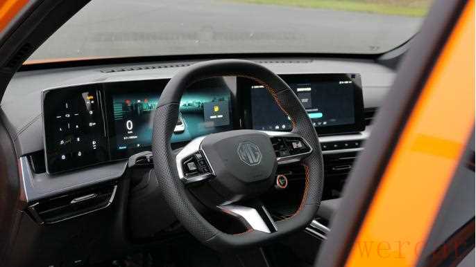 首先在硬件规格方面,MG ONE采用了30英寸三连屏,仪表与中控两屏之间带有些许角度曲折,使中控屏更面向于驾驶位一侧。