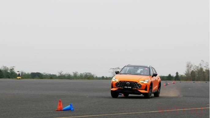 所以在麋鹿测试和绕桩部分,我更乐意体验MG ONE的转向手感和车身姿态。