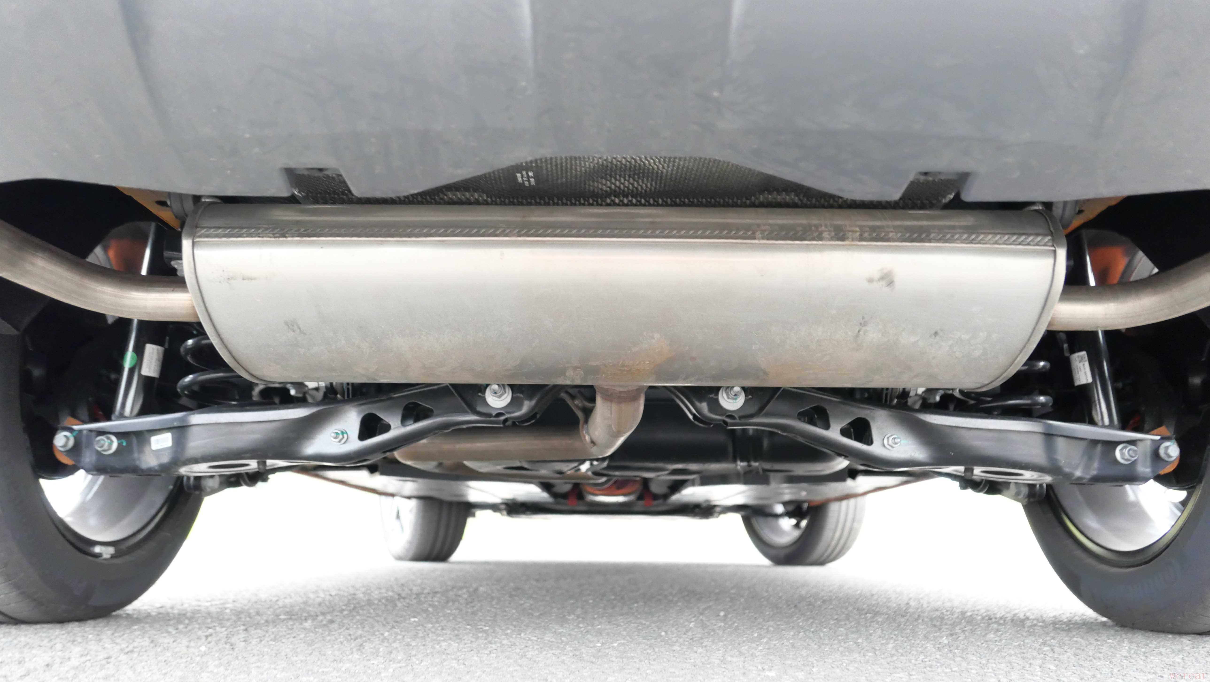 例如带有高位刹车灯的两片式车顶扰流板,以及底部的扩散器与四出排气装饰,都让尾部不会太过单调。