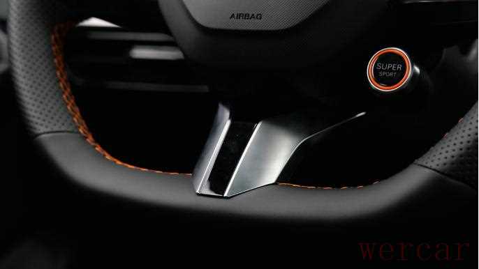 另外方向盘是平底造型,仔细还能发现它还在右侧配有一个“SUPER SPORT”的独立按钮,具体有什么用动态部分就会谈到。