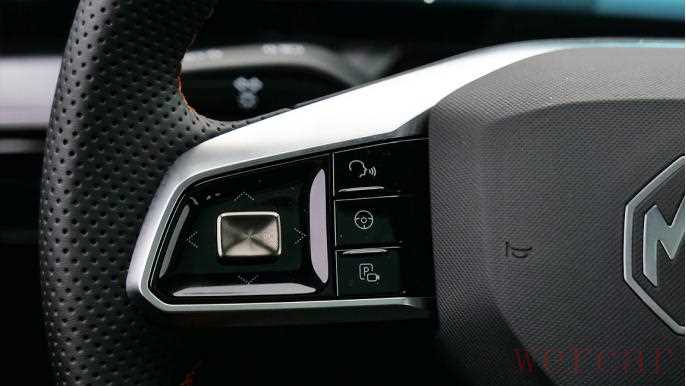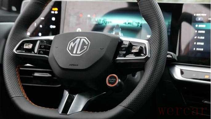 而MG ONE对于内饰运动氛围的打造,同样是从细节入手。好比如打孔皮质的方向盘,内部还镶嵌着与车身同色的缝线。