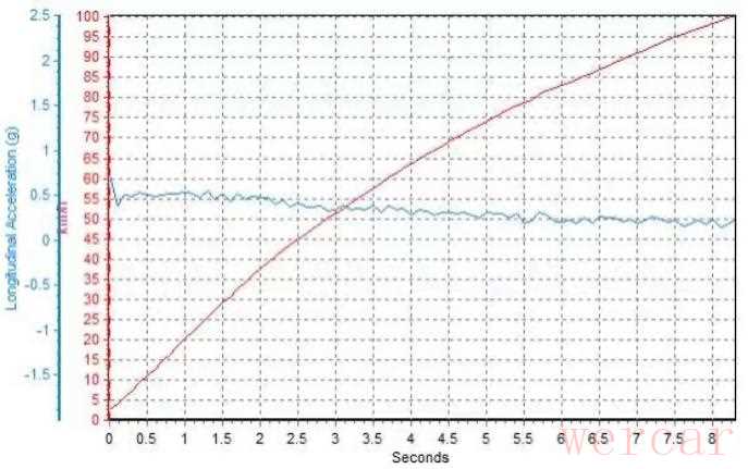 首先体验的是0-100km/h加速,测试状态是车辆挂入了S(运动)挡,只需将挡把在D挡的时候向后再拉一下即可切换。