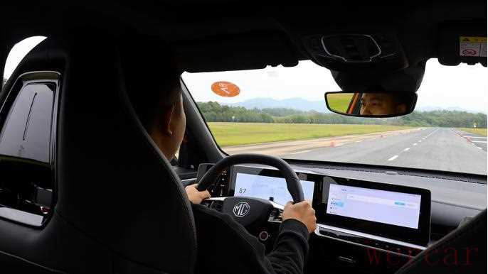 另外100-0km/h刹车表现也值得一说,总测试得出的结果为35.15米左右,这个数据确实相当不错!而实际体验上,MG ONE的刹车调校得较为线性,并不会有轻踩即重刹的那种强烈感,反而是更为均匀,我认为这对于日常驾驶来说是一种更好的体验,特别是车里有其他乘客的时候。