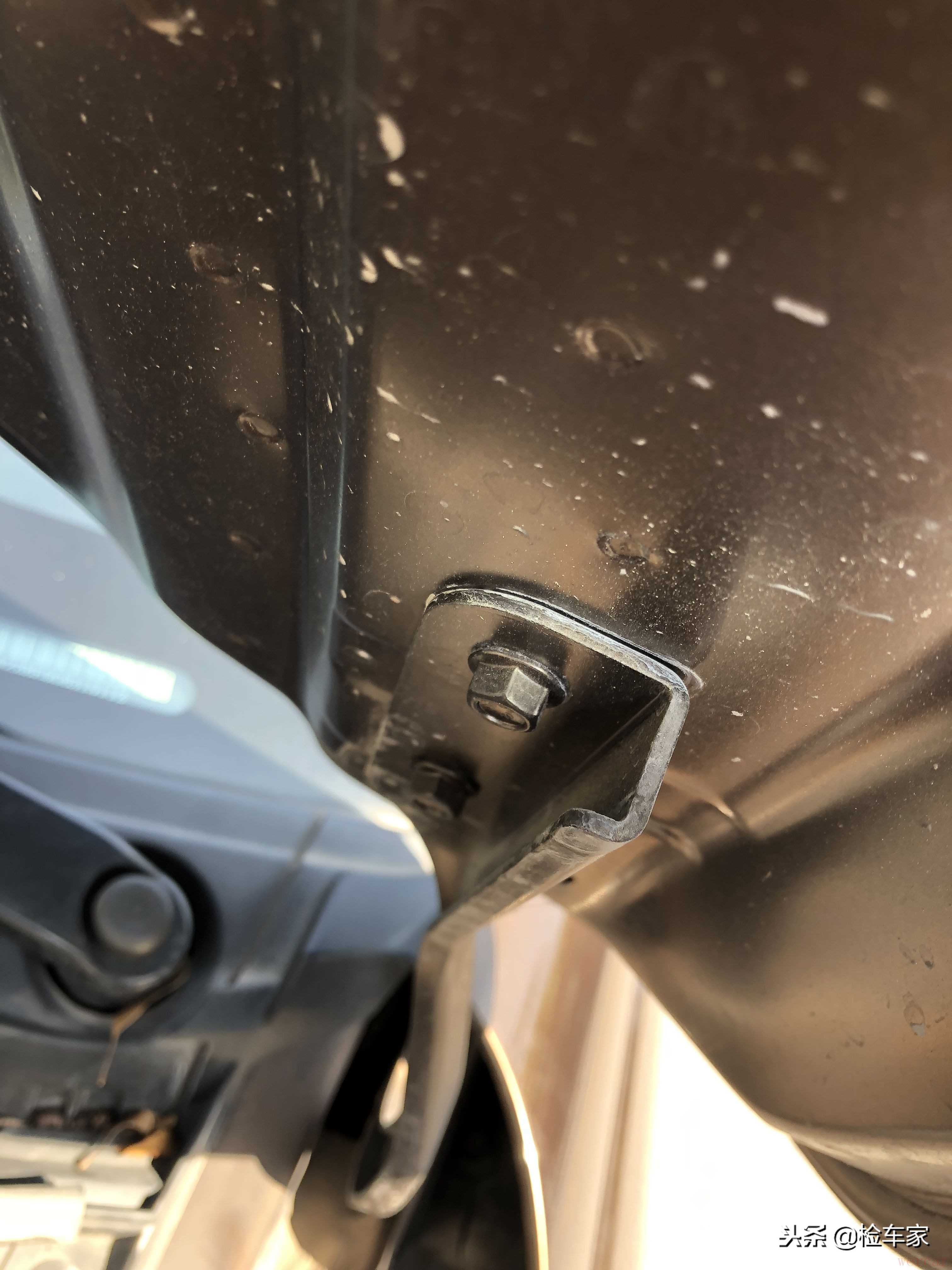 减震器螺丝无拆卸拧动痕迹,平面胶套无老化现象,塔顶漆面平顺,无二次喷漆及褶皱敲打的迹象,周围的密封胶焊点平顺规整。结合外观部件基本确定这里为原厂状态。