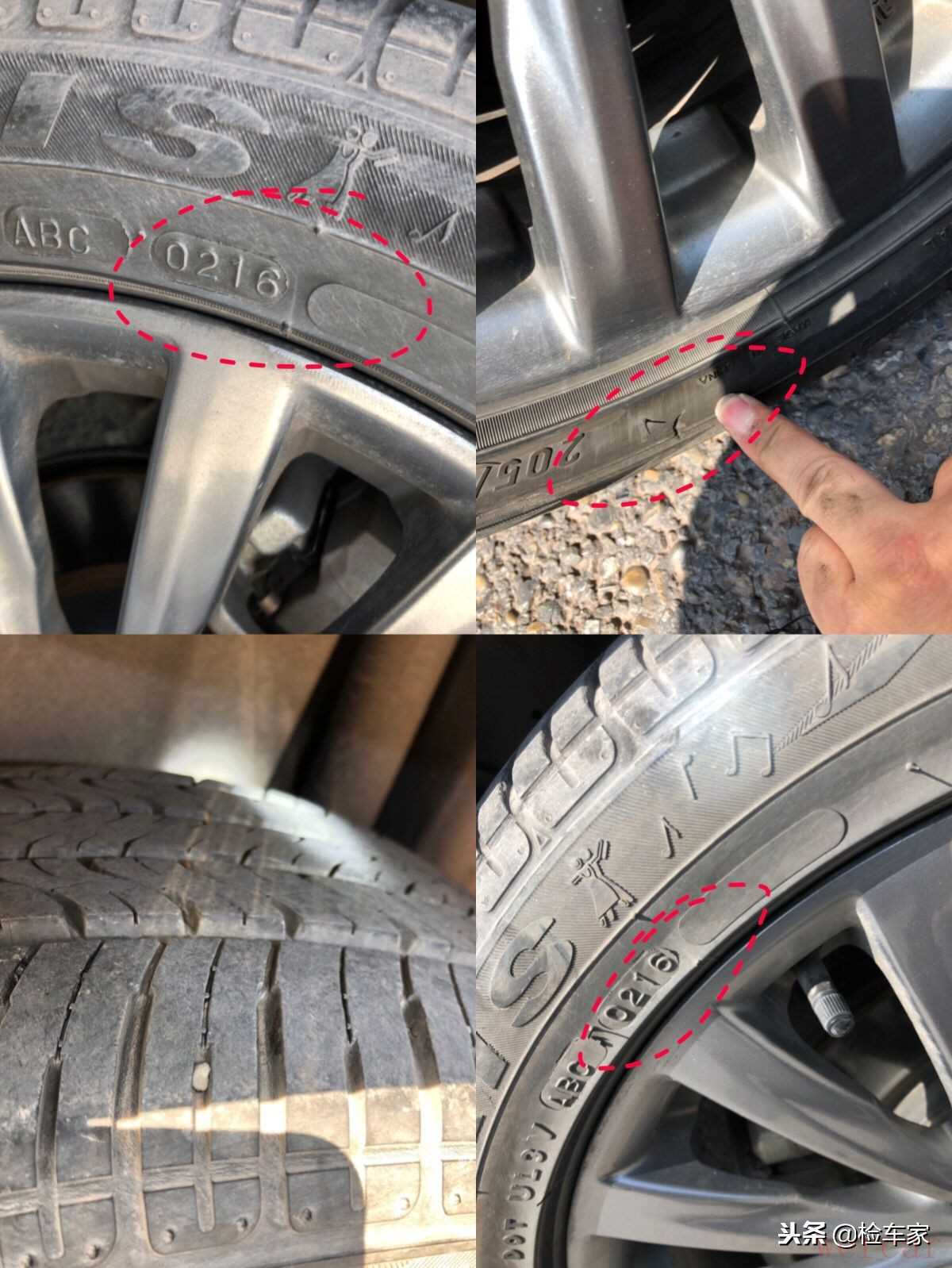 所以呢,今天就没法上架检测了。在卖家靠边停车告别的时候,小宝趁机对车辆的轮胎进行了检查,检查发现四条轮胎均为原厂轮胎,只是左前轮胎有些“缺肉”现象,轮胎沟槽还是比较深的,刹车片也属于正常磨损,结合车辆内饰及发动机舱的检测情况来看,所以车辆调表的可能性不大…