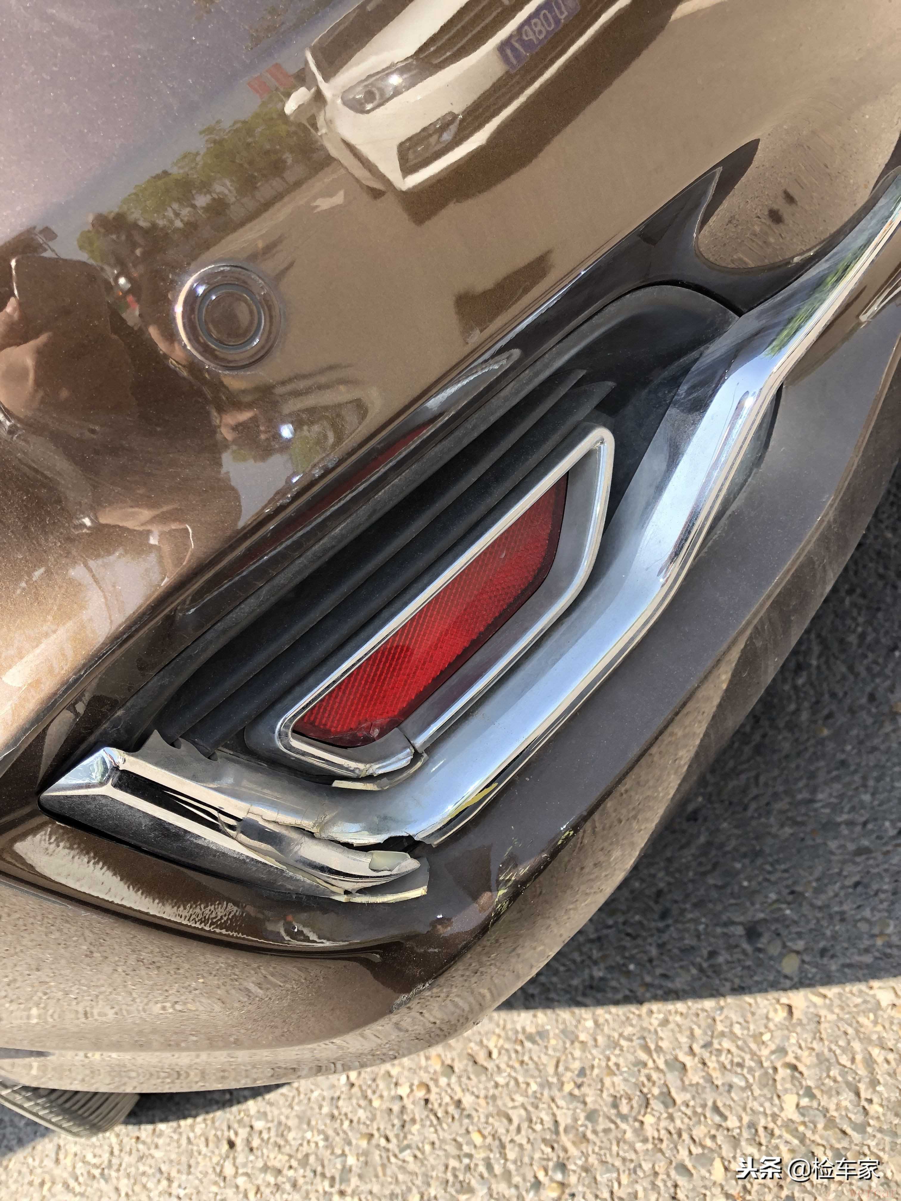 检测到后杠发现有拆卸喷漆修复痕迹,且左后尾灯开裂,这应该是倒车的时候不小心怼了一下。后期整备时更换个雾灯框就可以了,费用大概50左右~