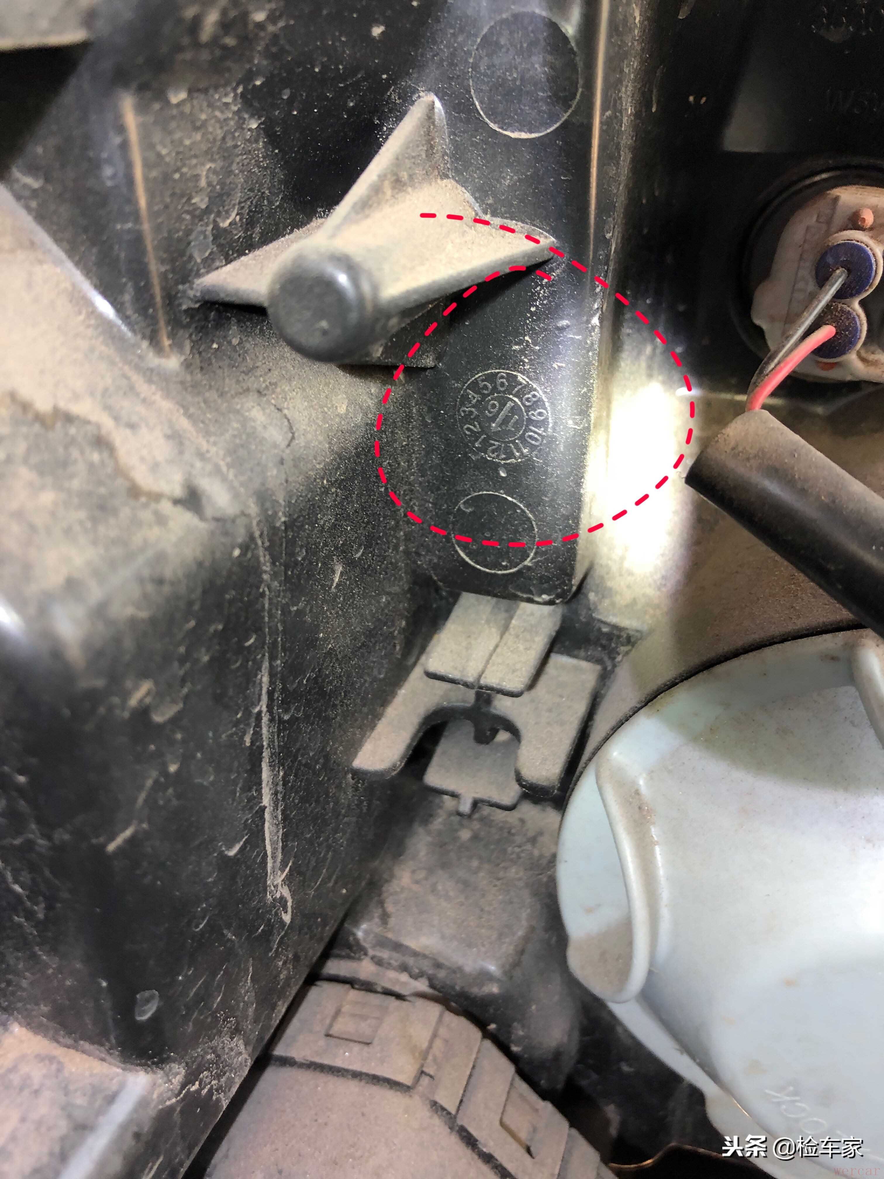 在缝隙中找到了大灯的生产日期,日期为16年1月,与原车生产日期相符。大灯螺丝无拆卸拧动痕迹,总体结合可以判断为原厂大灯,也表示前部出现事故的可能性不大。
