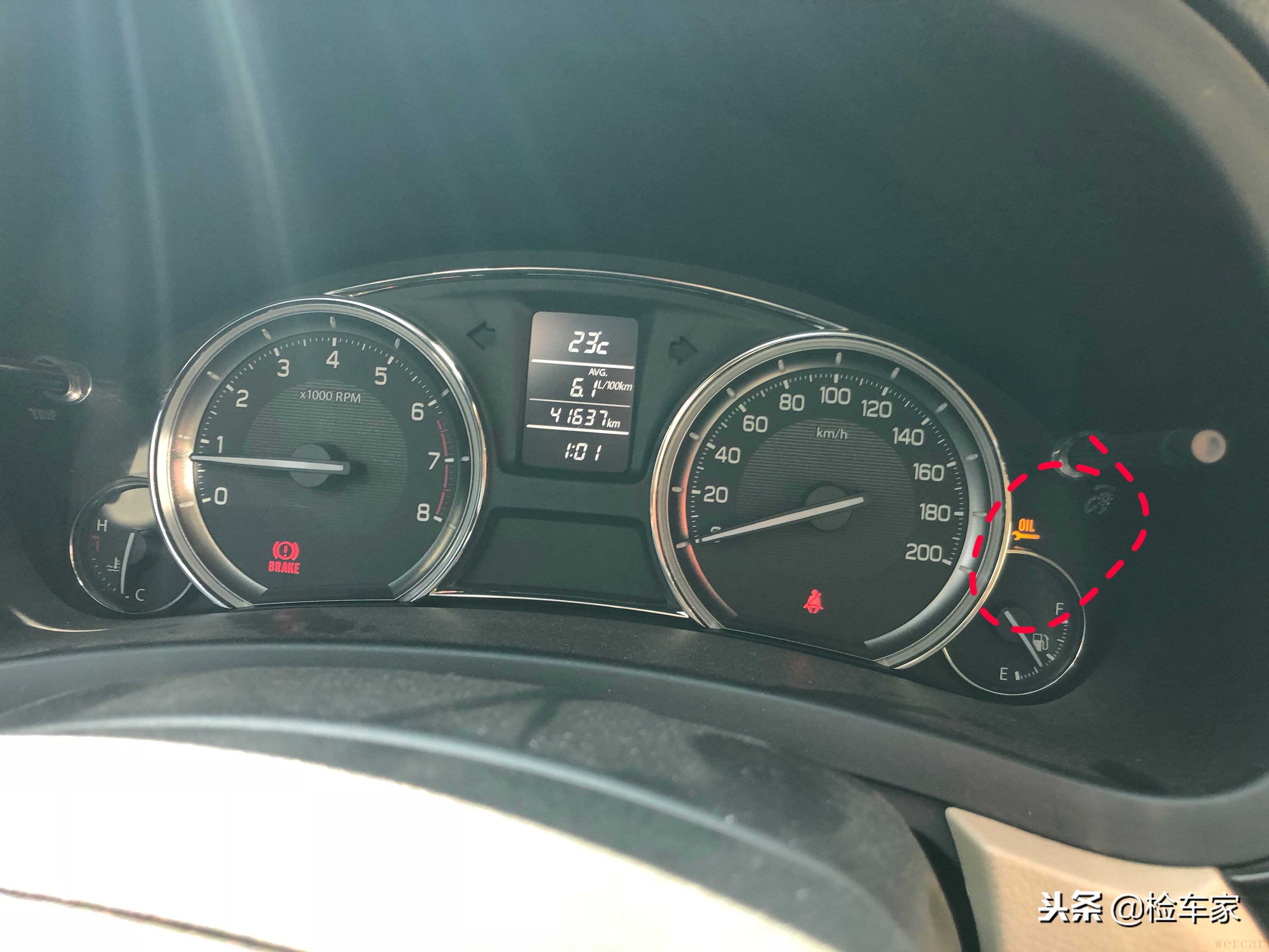 仪表盘采用双表盘+中央单色液晶显示屏的配置。并加以镀铬装饰点缀看起来比较精致。而且启悦全系车型采用同样的配置,并没有厚此薄彼,这还是比较厚道。随着点火车辆的自检,可以看到仪表盘上亮起了“小黄灯”,看样子车辆好长时间都未进行保养了,虽然车皮实耐用也不能这样啊!结合主驾驶座椅情况想必车主大哥是个粗放型的车主...... 可以看到目前表现公里数为:4.1万km,待会再进一步检查底盘看是否有无调表…