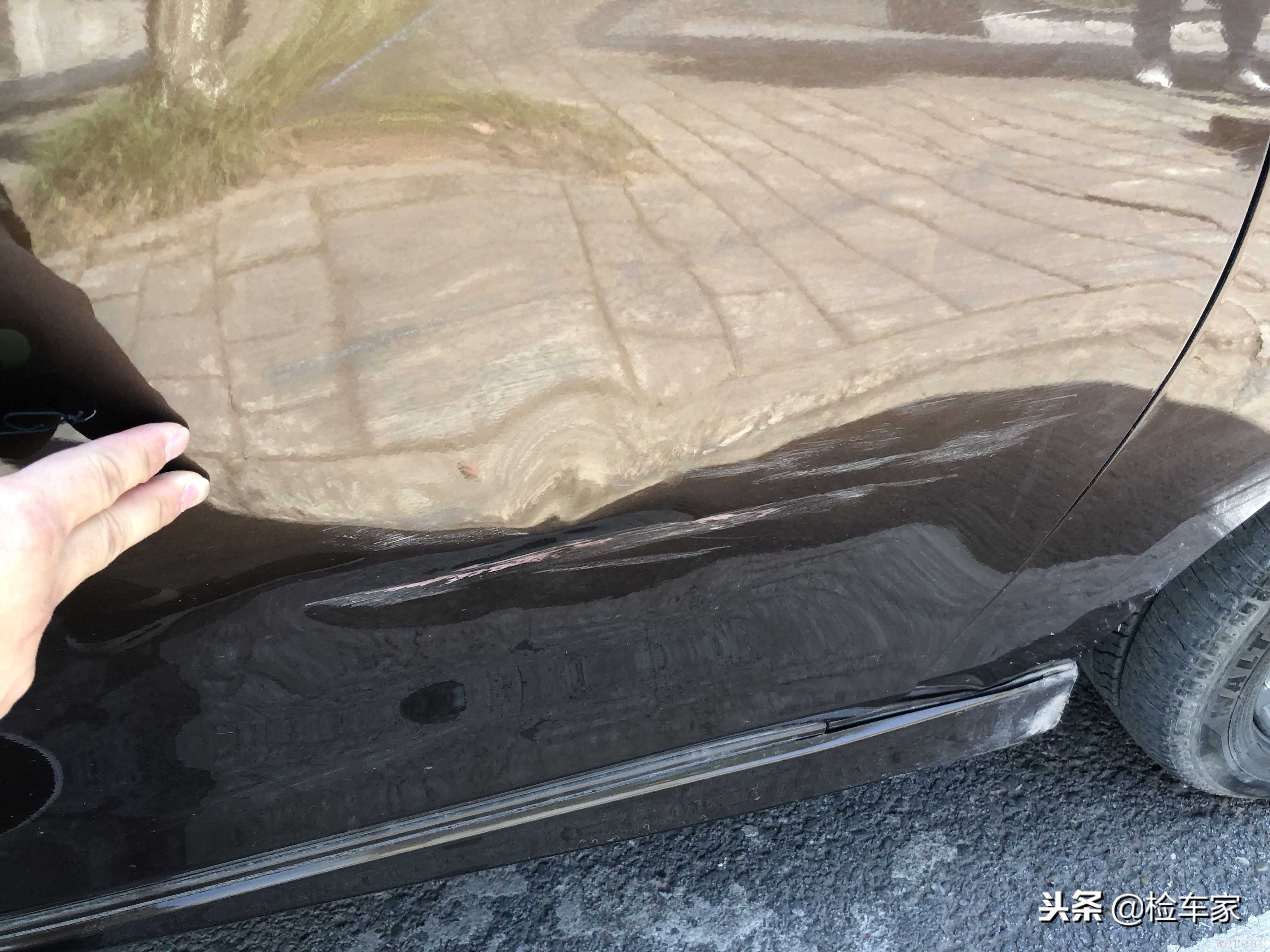 车主和买家两人在旁边聊天,小宝就开始干活了。首先围绕车辆大概看了下,看看车辆有哪些外观损坏及玻璃的使用情况,大概看了一圈,只是发现有几处剐蹭,全车玻璃均为原厂玻璃,可以初步排除车辆没有翻车及重大事故嫌疑,继续检测其他地方。