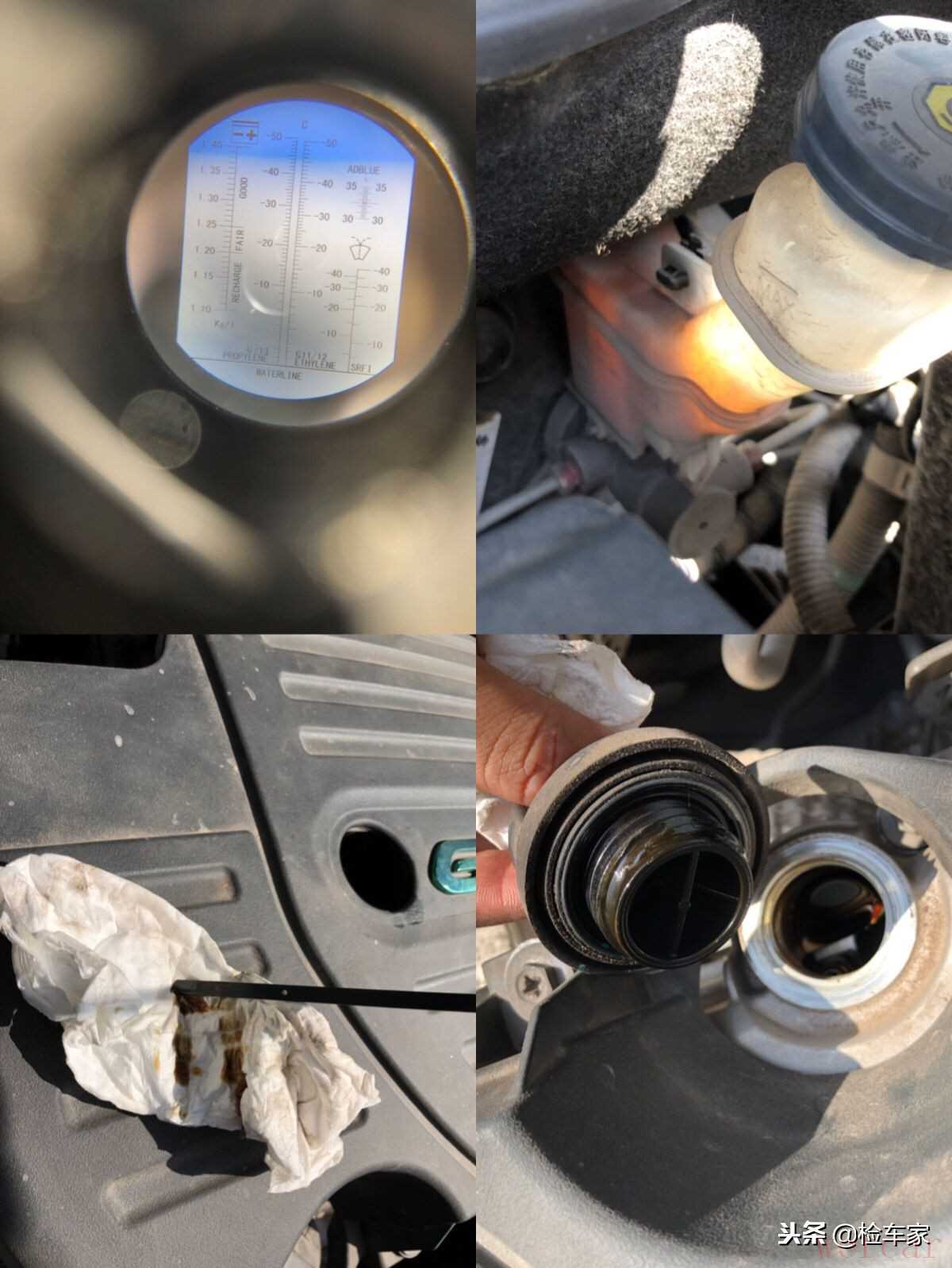 随后依次检测了全车油液的使用情况,发现全车油液均有变质现象。毕竟开了两年多了,都是原厂状态,没有拆卸更换,后期入手后需进一步更换全车油液,在此我也建议大家在买二手车后如果不清楚前任车主是何时保养的,最好自己到手后做一次全面的油液保养,这样不仅能让车辆性能得到恢复而且自己开的也踏实。