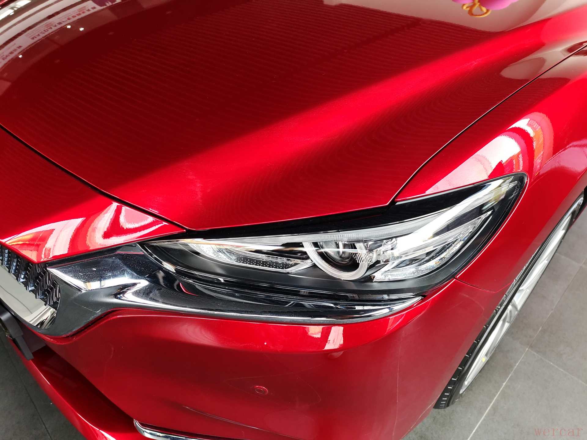 阿特兹的前脸采用的是马自达家族化设计风格,多边形进气格栅内部使用了点阵式结构进行装饰,搭配格栅下沿的高亮镀铬条带来了出色的辨识度;两侧大灯组采用了熏黑处理,内部集成有透镜,被镀铬条相连,质感表现比较出色。